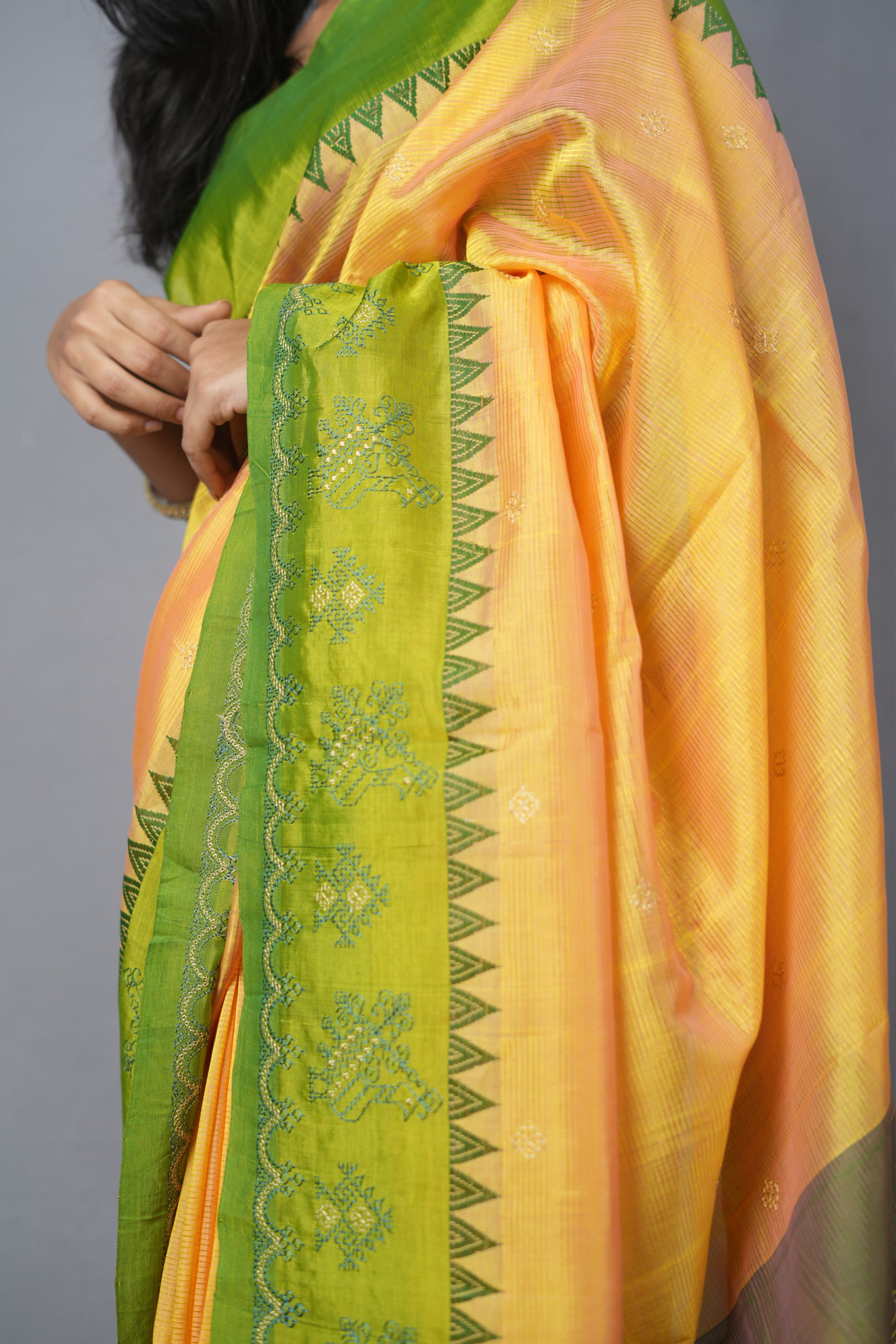 Hemalata Vana | Mustard Gold & Leaf Green Mangalagiri Silk-Cotton Saree