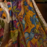 The Palette: Nature’s Purest Extracts The Kala-Vriksha (The Tree of Art) is a celebration of the earth’s own colors. Eschewing all chemicals, this saree is painted using natural pigments—vibrant indigos from plants, deep reds from madder roots, earthy yellows from turmeric and pomegranate rinds, and rich blacks from fermented iron. The resulting palette is soft, soulful, and matures beautifully with every wear.
