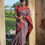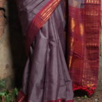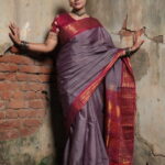 The Palette: A Vintage Earth-and-Wine Symphony The Pallavi Vasudha (The Earth’s New Bloom) is a study in refined contrasts. The body is rendered in a sophisticated Mauve-Taupe or Dusty Rose, offering a muted, earthy elegance. This is dramatically anchored by a deep Maroon or Wine Red border, creating a “Vintage-inspired” palette that blends earthy neutral tones with deep, festive jewel accents for a look that never goes out of style.