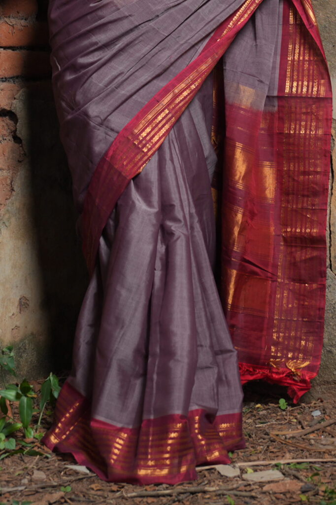 Pallavi Vasudha | Mauve & Maroon Gadwal Sico Handloom Saree