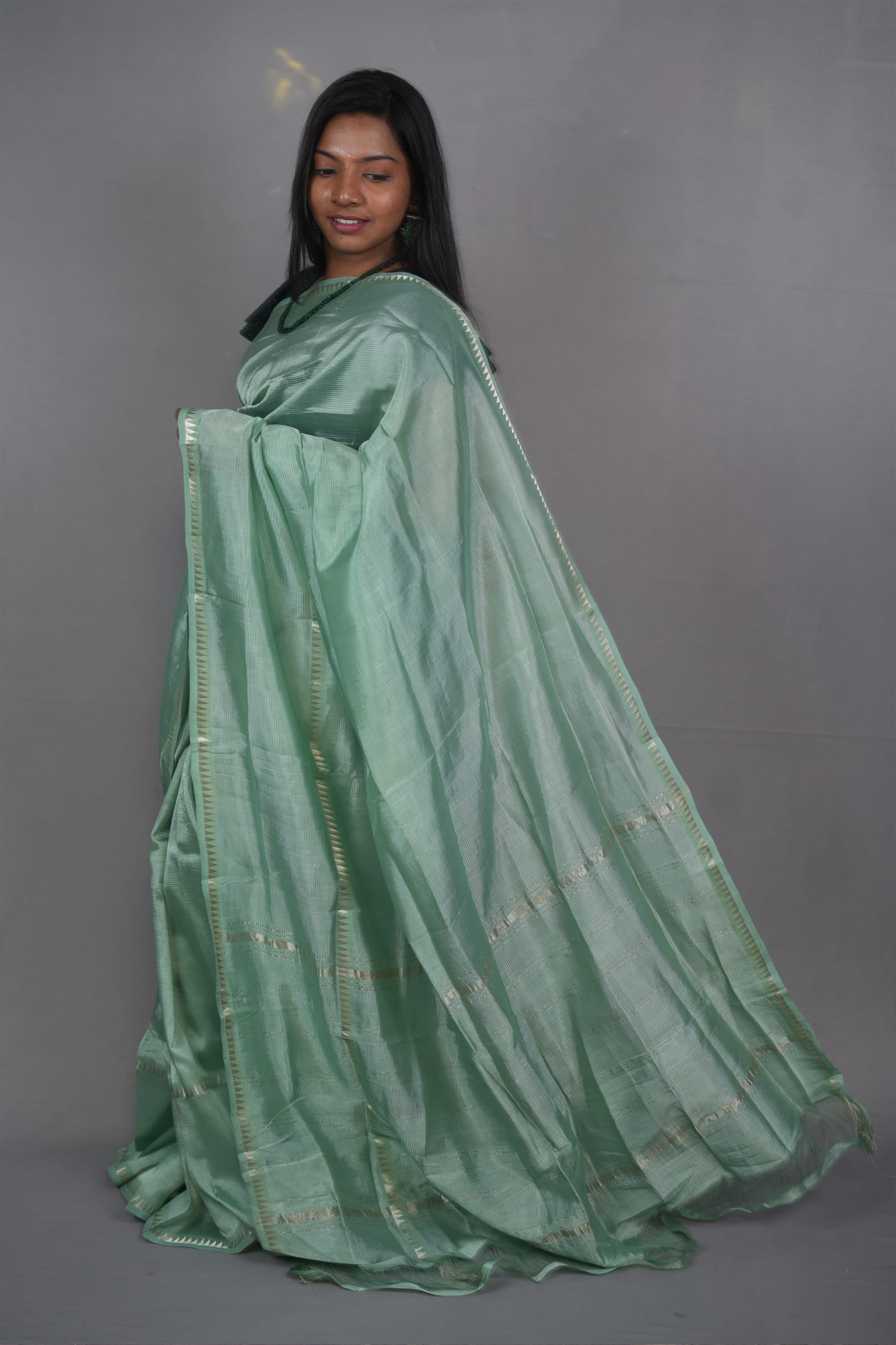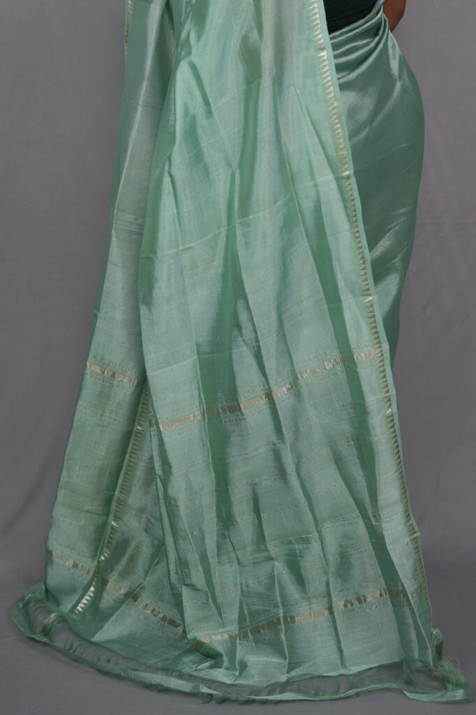 Border & Pallu Color: Tonal Seafoam with Crisp Silver Zari