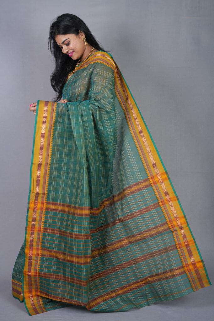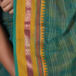 Fabric & Suitability: The Crispness of Tradition Crafted from Pure Handloom Cotton, this saree is highly durable and celebrated for its ability to hold pleats perfectly. It is the quintessential “Power Saree” for daily office wear, academic environments, or cultural seminars, becoming softer and more comfortable with every wash while maintaining its signature crisp silhouette.